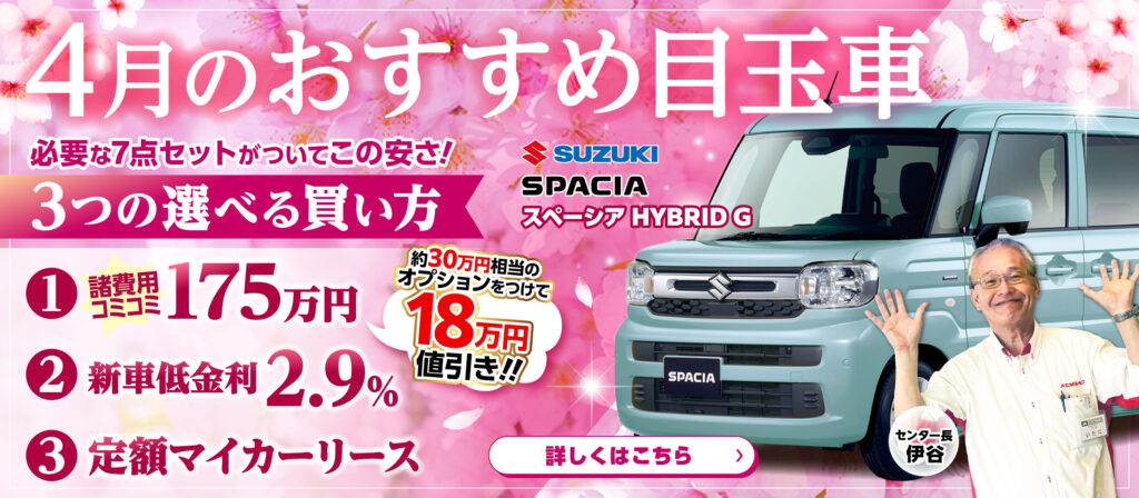 今回は4月の目玉車としてスペーシアについてご紹介します。
