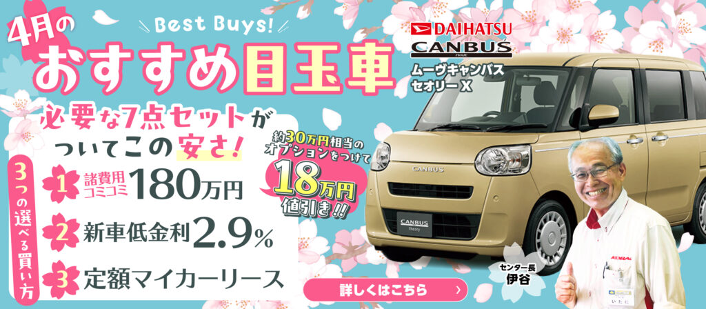 【4月目玉車】ムーヴキャンバスについてご紹介♪