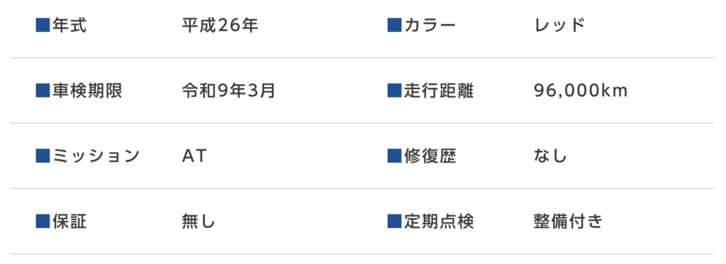 下記、お車の情報になります。