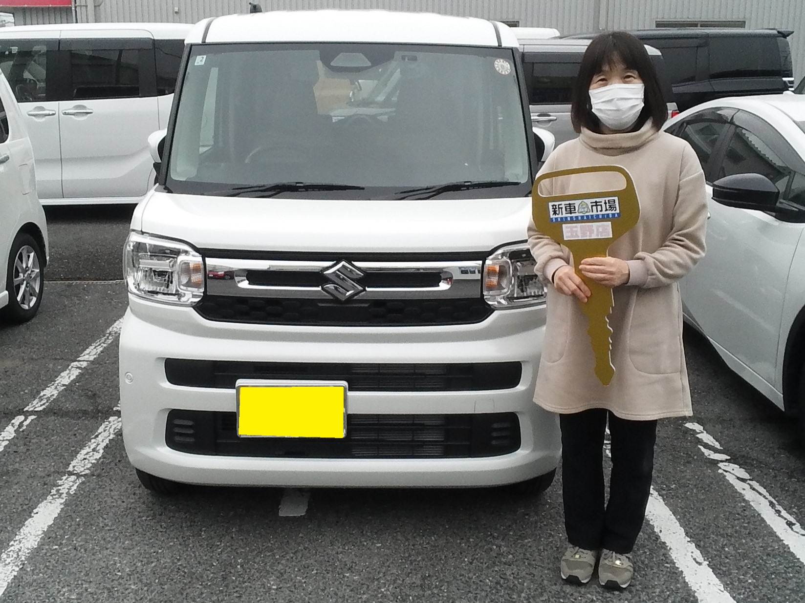 スペーシア納車しました。広い軽自動車でいろいろ便利に使える車です。家族で楽しくカーライフをお過ごしください。何かありましたらお気軽にお声がけ下さい。今後ともよろしくお願いします。ありがとうございました。
