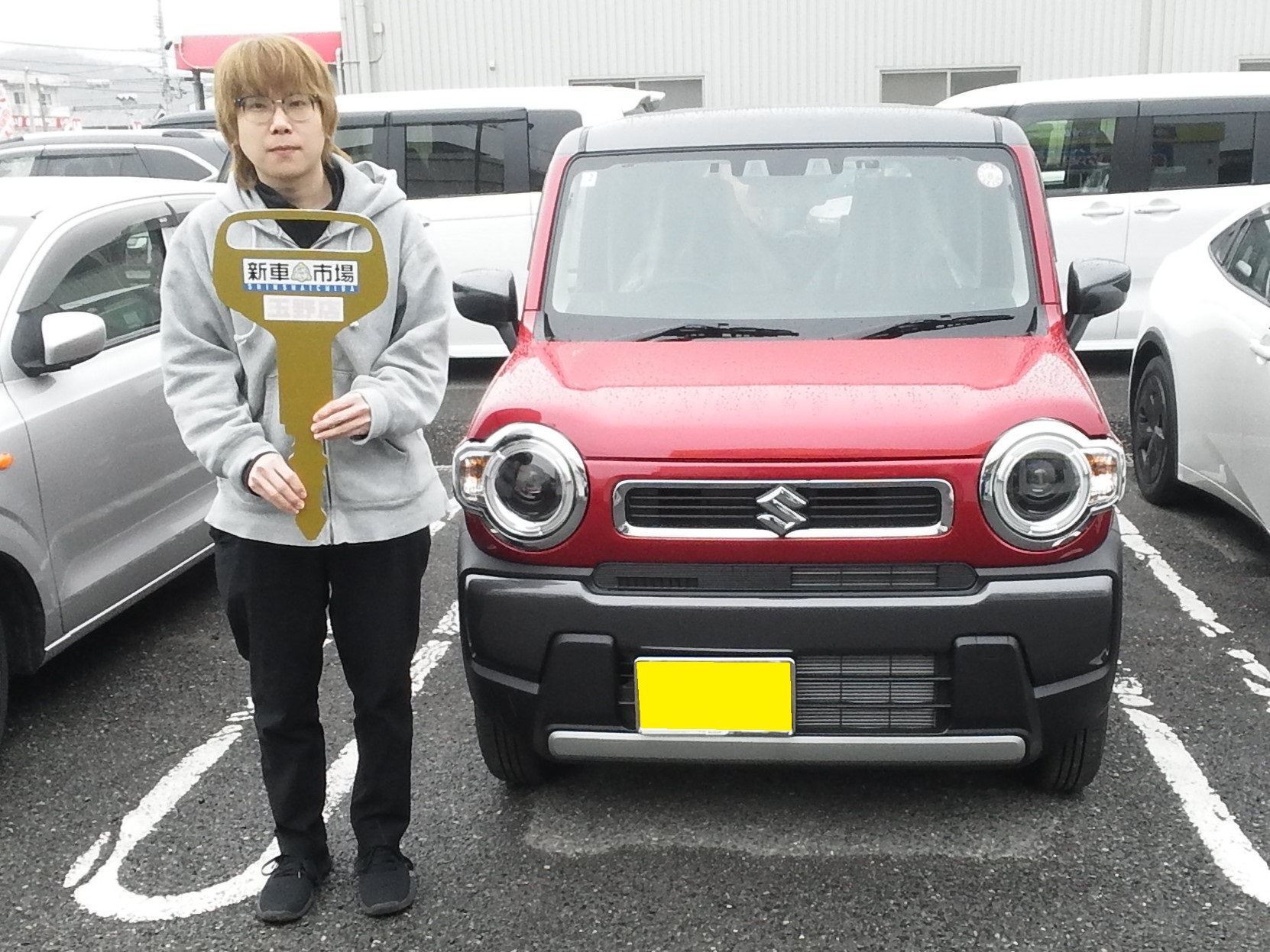 ハスラー納車しました。この度は当店でお車をご購入いただきありがとうございました。当店は販売から車検・点検・保険・鈑金塗装等と車の事ならトータルサポートいたします。何かありましたらお気軽にお声がけ下さい。今後ともよろしくお願いします。ありがとうございました。